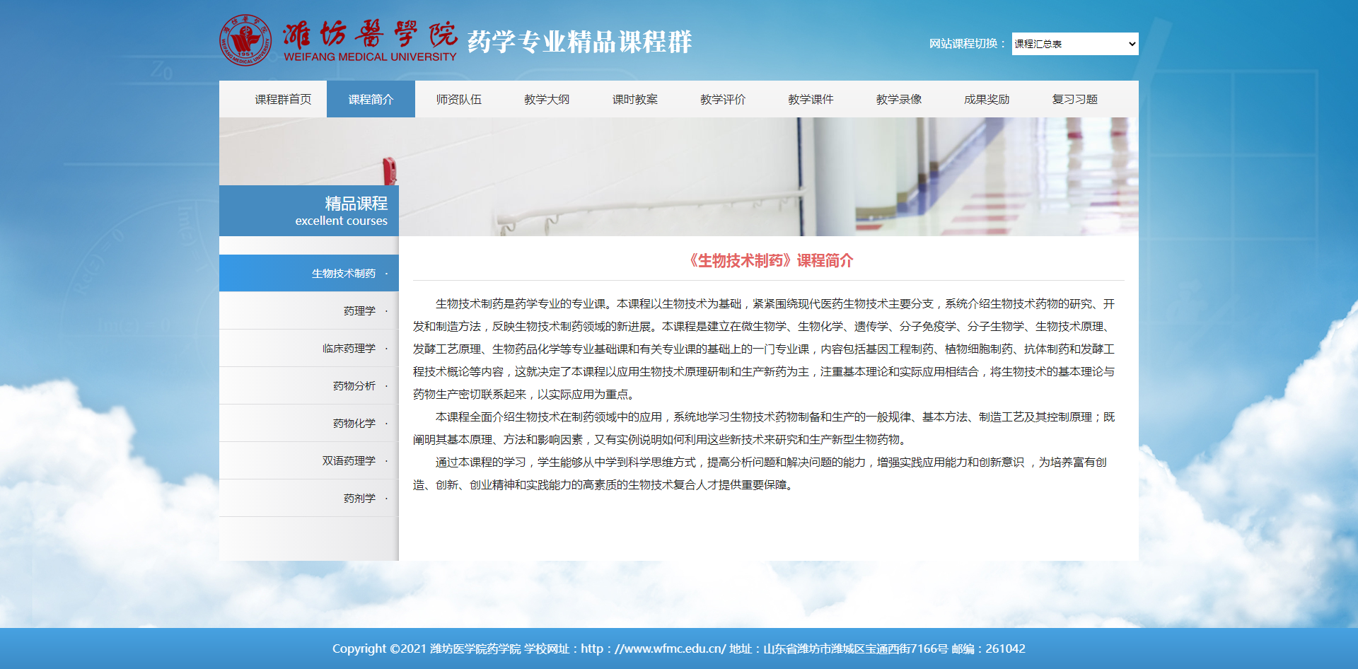 药学专业精品课程群